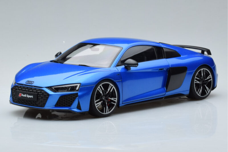 A 1:18 scale model measures approximately 25-28 cm (approximately 10-11 inches). The Audi R8 Performance Blauw Kengfai 1:18 is perfect for display in a glass cabinet or on a shelf.