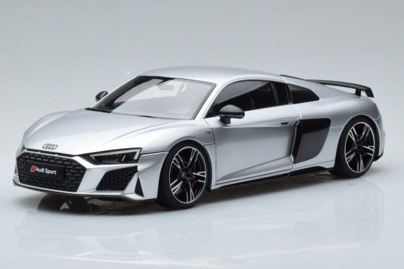 A 1:18 scale model measures approximately 25-28 cm (approximately 10-11 inches). The Audi R8 Performance Zilver Kengfai 1:18 is perfect for display in a glass cabinet or on a shelf.