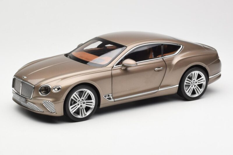 The Bentley Continental GT Dark Cashmere Metallic Norev 1:18 is crafted from Metaal. Die-cast zinc alloy body with detailed plastic parts, rubber tires, and high-quality paint finish. Die-cast models are known for their weight, durability, and realistic feel.