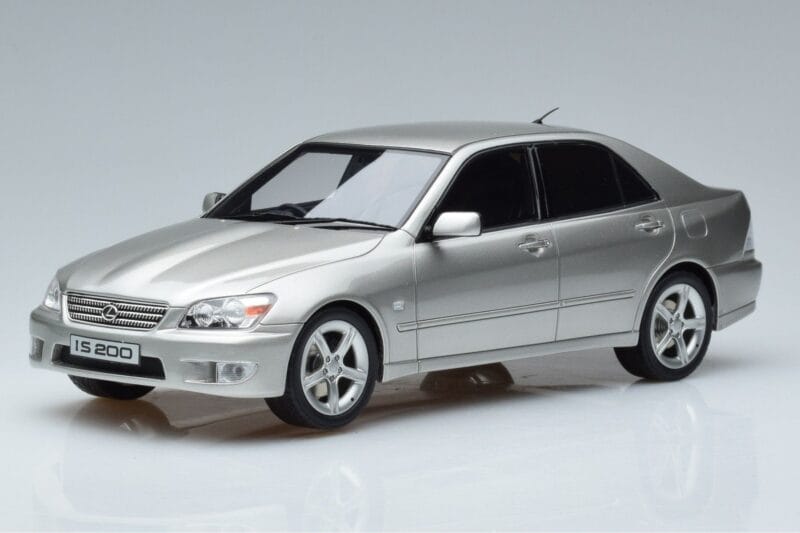 A 1:18 scale model measures approximately 25-28 cm (approximately 10-11 inches). The Lexus IS200 XE10 Zilver Otto 1:18 is perfect for display in a glass cabinet or on a shelf.
