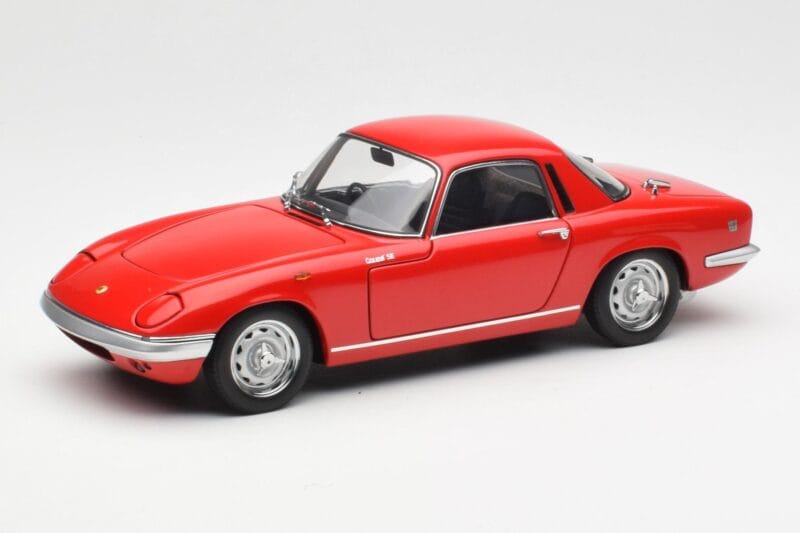 The Lotus Elan S2 SE Coupe Rood AUTOart 1:18 is crafted from Metaal. Die-cast zinc alloy body with detailed plastic parts, rubber tires, and high-quality paint finish. Die-cast models are known for their weight, durability, and realistic feel.
