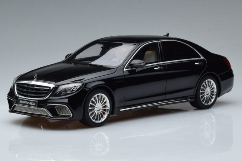 A 1:18 scale model measures approximately 25-28 cm (approximately 10-11 inches). The Mercedes AMG S65 W222 Zwart GT Spirit 1:18 is perfect for display in a glass cabinet or on a shelf.