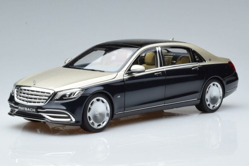 The Mercedes Maybach S650 X222 Zilverblauw Norev 1:18 is crafted from Metaal. Die-cast zinc alloy body with detailed plastic parts, rubber tires, and high-quality paint finish. Die-cast models are known for their weight, durability, and realistic feel.