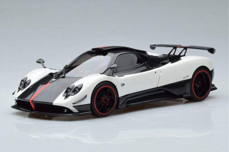 The Pagani Zonda Cinque Wit Benny Almost Real 1:18 is crafted from Metaal. Die-cast zinc alloy body with detailed plastic parts, rubber tires, and high-quality paint finish. Die-cast models are known for their weight, durability, and realistic feel.